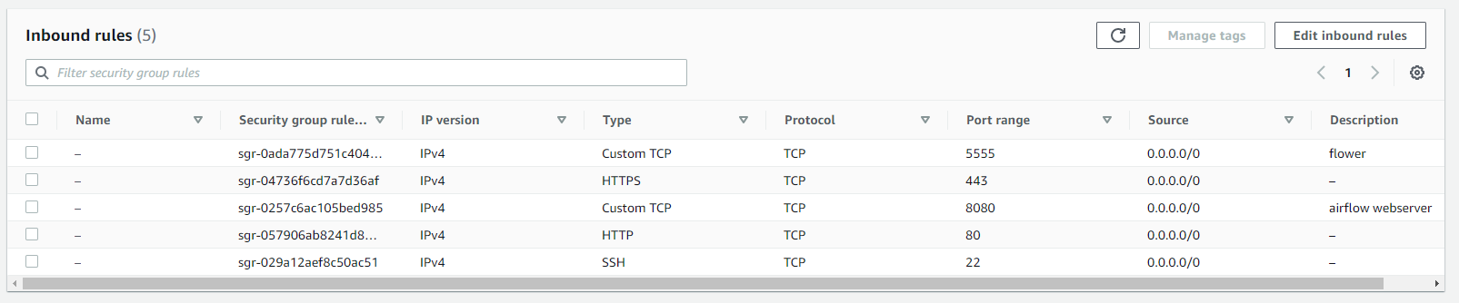 SG 그룹에서 Airflow Webserver, flower port를 open