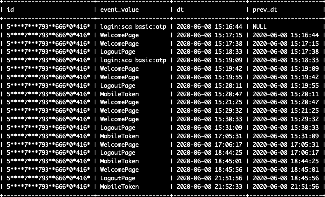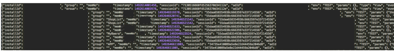 - 타임스탬프, 호스트 이름, 프로세스 타입, 애플리케이션, 실행 내용, 이벤트값, 파라미터 등의 정보를 저장