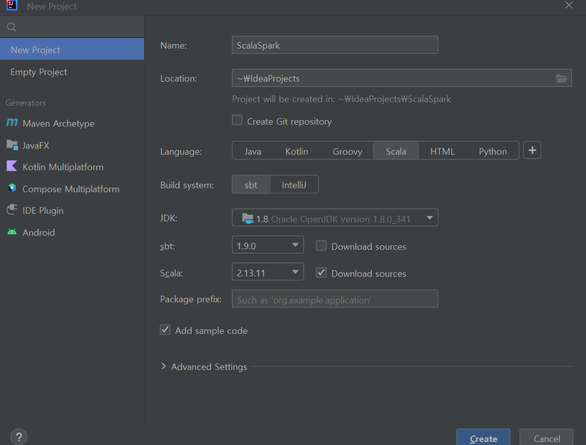 스칼라 새 프로젝트 생성