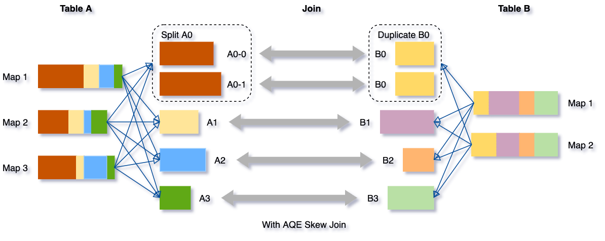 - runtime 통계에 의해 skew를 찾아내고, skew된 partition을 더 작은 파티션으로 분리
