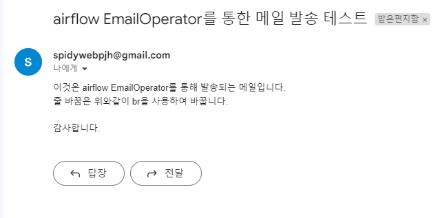 subject='airflow EmailOperator를 통한 메일 발송 테스트',