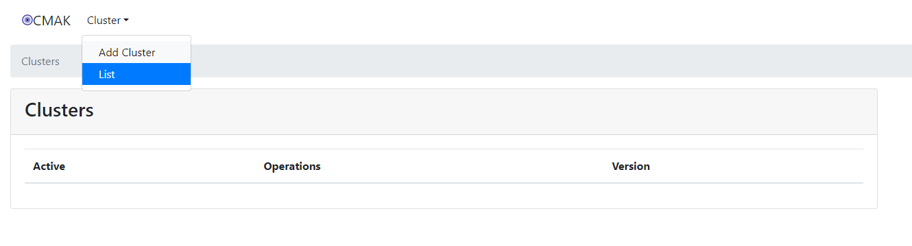public ip:9000으로 접속하면 아래와 같이 CMAK UI가 보임