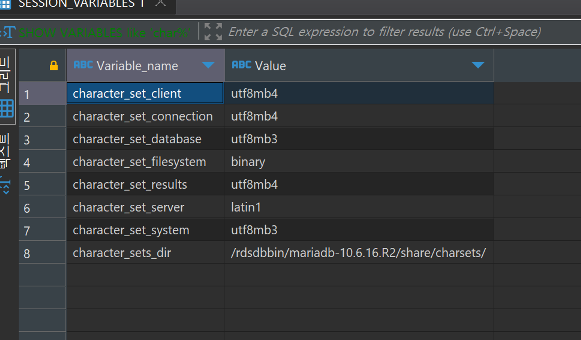 CHARSET: utf8mb4 COLLATE: utf8mb4_general_ci