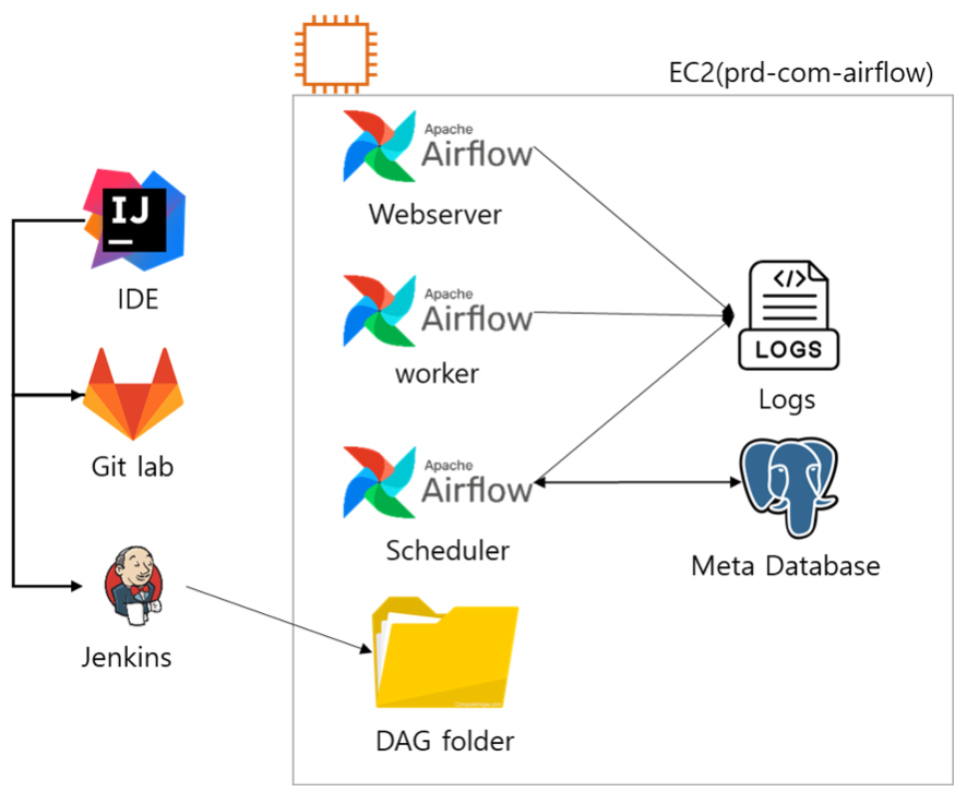 → monolothic이던 airflow 환경을 각각 분리하여, 어느 한 곳에서 에러가 나도 영향 가지 않게 분리 - jenkins를 통한 DAG 배포 과정 생략