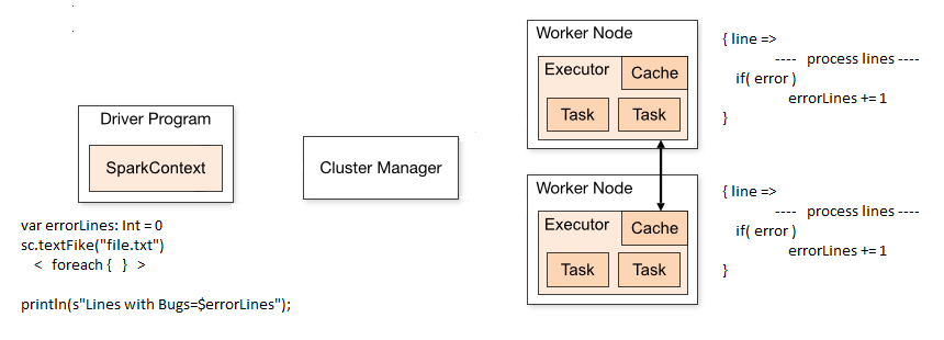 sc.textFike("file.txt").foreach { line =>