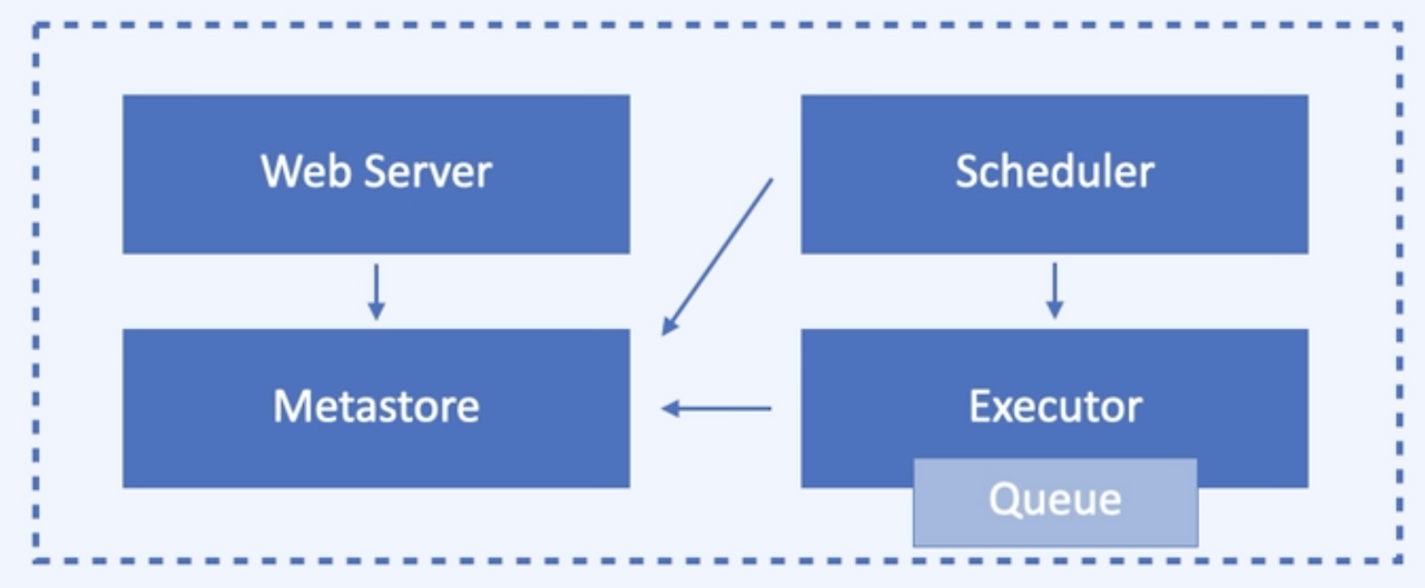 - Airflow UI 와 스케줄러가 메타스토어의 실행 정보를 읽어옴