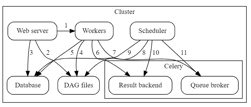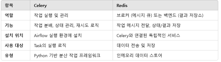 - Executor(Queue): 여기에서는 Redis, RabbitMQ와 같은 외부 Queue를 사용하며, Celery Executor를 사용