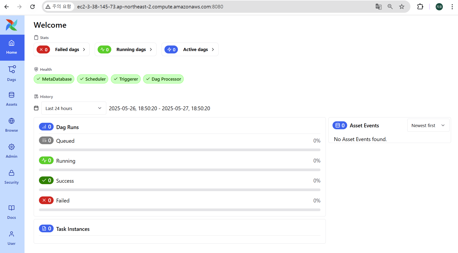 EC2 publicdns:8080으로 접속(airflow webserver)