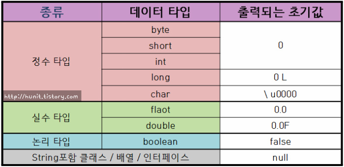 -메소드 밖에, 클래스 안에 선언된 변수, 앞에는 static이라는 예약어가 없어야 한다.