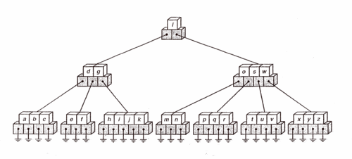-B-tree의 각 노드는 키 값과 포인터를 가짐