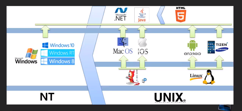 과거에부터 NT 또는 UNIX 두 가지의 OS를 가지고 소프트웨어를 만들었고 그것을 기반으로 만들어진 운영체제들 또한 많이 만들어졌습니다. 너무 많은 운영체제가 만들어지며 모든 OS에서 작동할수있는. NET , JAVA와 같은 플랫폼도 등장하였습니다. 하지만 요즘엔 HTML5로 소프트웨어를 만든다면 모든 OS에 상관없이 웹브라우저만 있다면 모든 디바이스 모든 OS에서 작동 가능하기 때문에 매우 강력합니다.