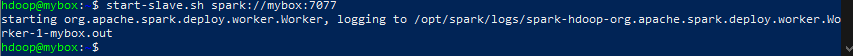저같은 경우엔 start-slave.sh spark://mybox:7077 로 실행시켰습니다.